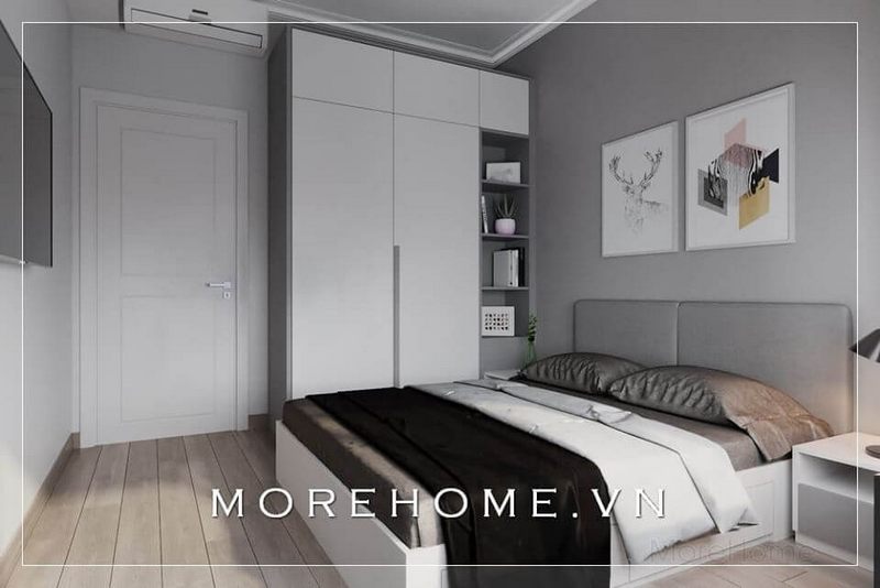 Mẫu giường ngủ có ngăn kéo, đầu giường bọc nỉ cùng thiết kế đơn giản, hiện đại cho phòng ngủ