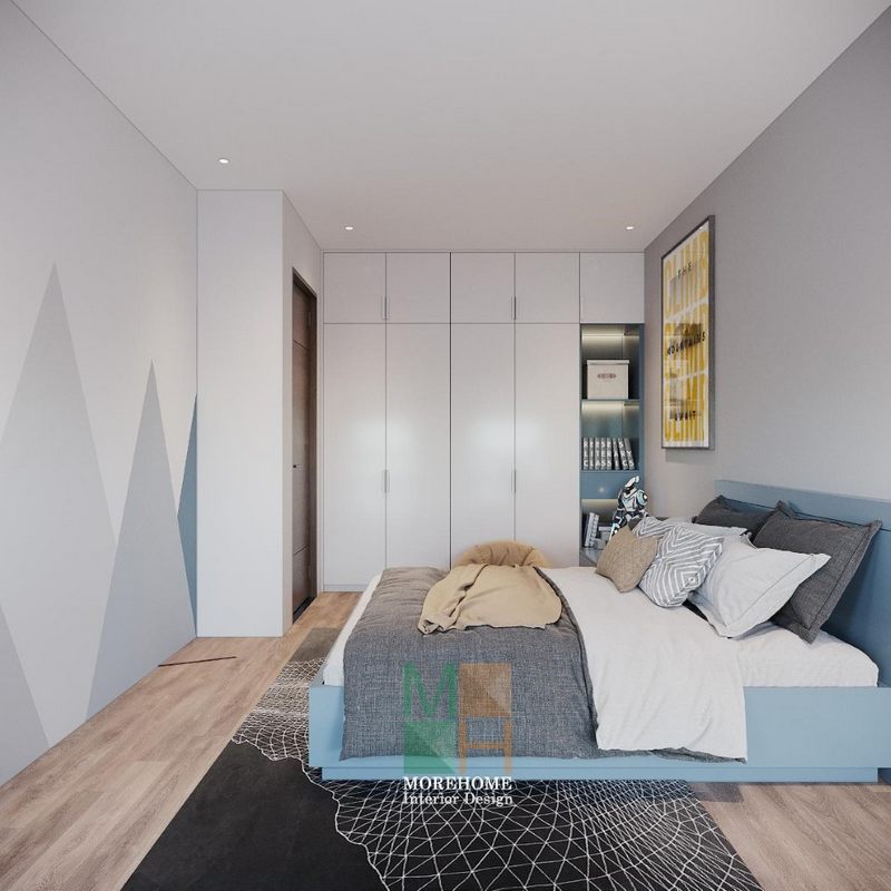 Giường ngủ cư cao cấp với gam màu trắng làm nổi bật, phần đầu giường được thiết kế theo kiểu mới lạ và hấp dẫn hơn.