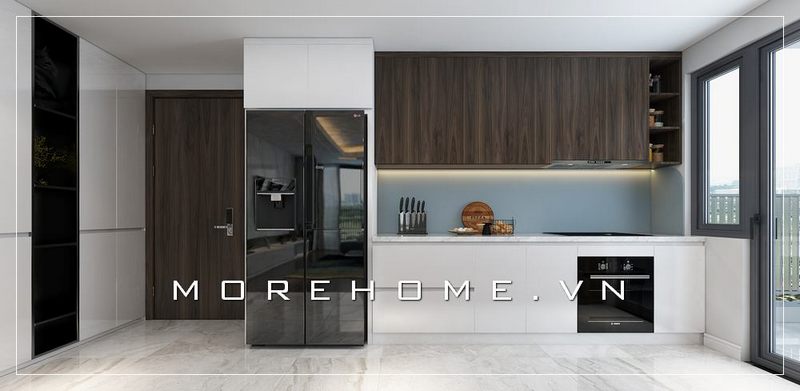 Bên cạnh đó, ánh sáng nhân tạo cũng không kém phần quan trọng. Đèn LED âm trần hoặc đèn treo có thiết kế mỏng nhẹ sẽ tạo nên không khí ấm áp và dễ chịu cho không gian bếp. Hãy cân nhắc việc kết hợp các loại đèn: từ đèn chiếu sáng bàn ăn đến đèn soi sáng bề mặt làm việc. Nhờ vậy, bạn không chỉ nâng cao tính năng sử dụng mà còn tạo ra một không gian hấp dẫn và phong cách.