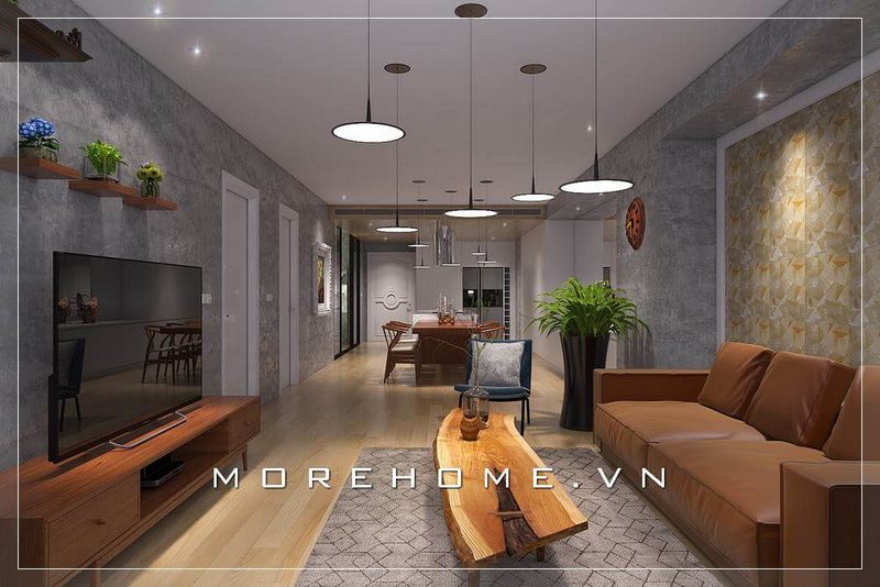Để làm cho không gian phòng khách chung cư trở nên linh hoạt hơn, sử dụng vật liệu nhẹ như gỗ ép, gỗ tự nhiên sẽ giúp không gian trở nên mở và thoáng hơn rất nhiều.